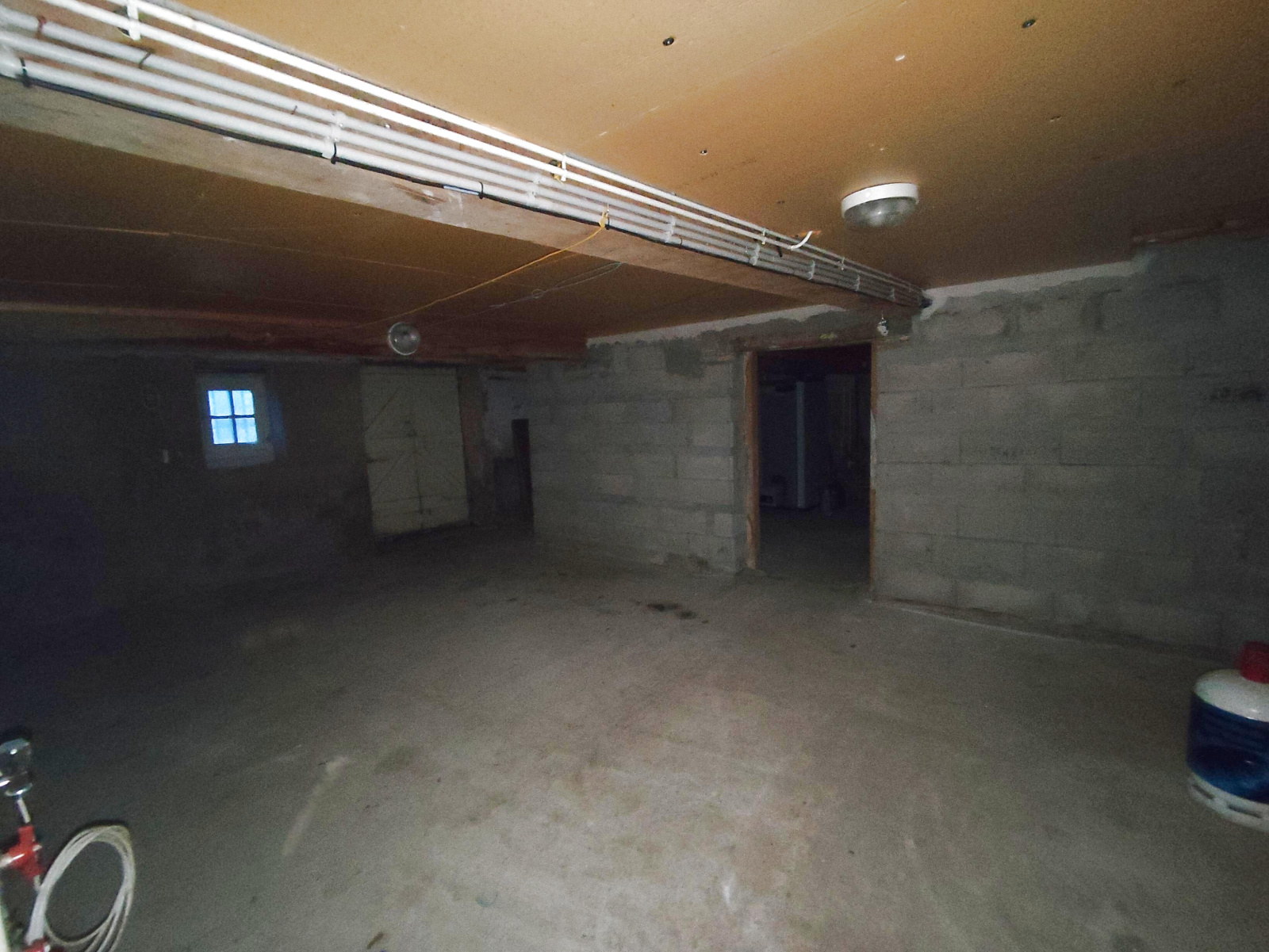 - Au rez-de-chaussée: une belle entrée qui donne directement sur le jardin, un grand salon traversant avec cheminée, une cuisine séparée, semi-équipée, avec une grande pièce arrière cuisine attenante et cellier avec la chaufferie (chaudière fioul), sortie sur le jardin et la rue également, un wc;