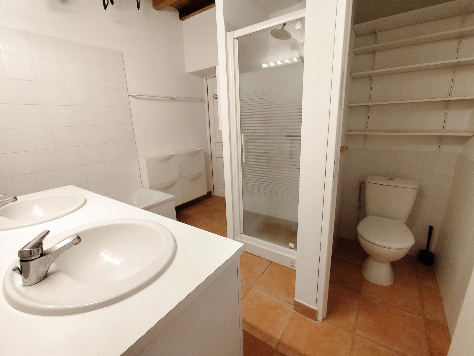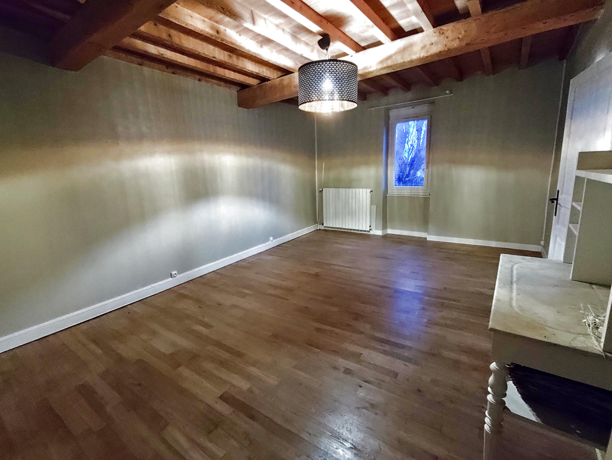 - A l'étage: un vaste couloir qui dessert une grande pièce traversante, 2 grandes chambres, une salle de bains avec baignoire, une douche, un wc séparé, un bureau, une petite salle d'eau avec douche et lavabo.